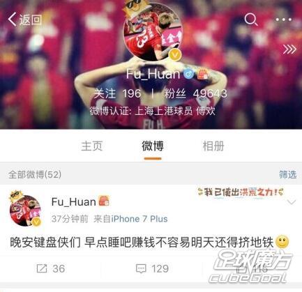 傅欢在微博中写道:“晚安键盘侠们 早点睡吧赚钱不容易明天还得挤地铁”。傅欢一度登上了微博热搜前20名。