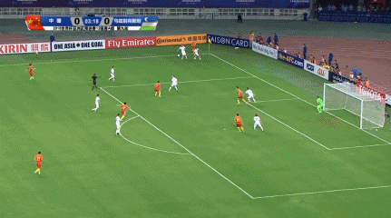 第56分钟,杰帕罗夫开出角球送到门前,曾诚出击解围不远,乌兹别克斯坦禁区内连续头球接力,舒莫罗多夫的头球攻门被曾诚轻舒猿臂将球挡出底线。