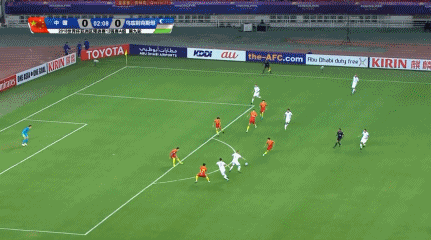 第10分钟,张稀哲突然送出直塞,蒿俊闵插上稍慢,乌兹别克斯坦门将涅斯捷罗夫出击滑铲将球破坏,武磊补射就差一步,随后乌兹防守球员赶紧将球大脚解围出变线,这是开场后,国足创造的最好一次机会。