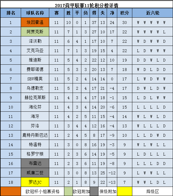 以上就是2017荷甲积分榜第11轮最新详情,了解更多2017荷甲积分榜详细动态,敬请关注。