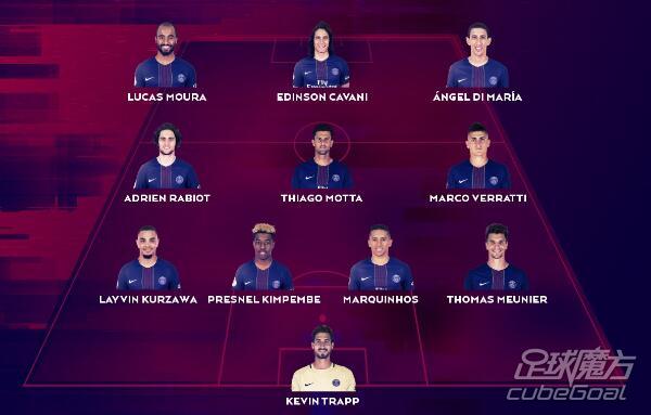 前锋:卡瓦尼,卢卡斯,迪马利亚
