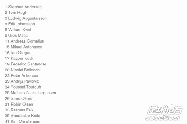 哥本哈根大名单缺少了三名受伤的球员,分别是中场维尔比奇(9场)、阿曼卡瓦(3场)和托姆森(0场),其中维尔比奇是主力人选。
