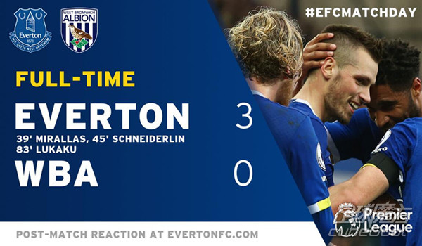 在本周英超第28轮比赛中,埃弗顿3-0完胜西布朗维奇,太妃糖中场施奈德林发挥出色并贡献了一粒进球,在英超积分榜上,埃弗顿积47分排名第七。