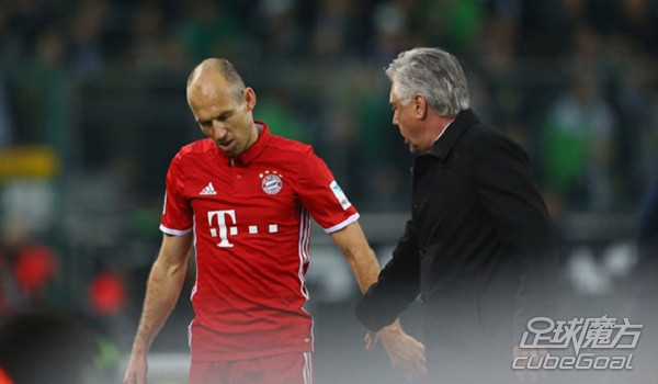 对阵门兴的比赛,罗本被安帅换下的时候,气鼓鼓地坐在周围一片笑开花的欢乐海洋中,他生气的并非是自己被换下,而是比赛第78分钟时,禁区前持球的莱万并未选择将球传给无人盯防的罗本,而是选择了一脚绵软无力的远射,招致罗本不满。