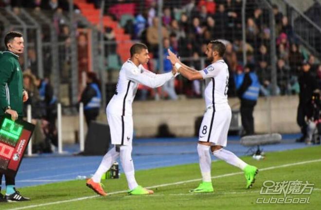 18岁的姆巴佩之前只在法国U19出场过,在这场比赛中,他身边的队友包括吉鲁和格列兹曼。吉鲁在比赛中梅开二度,而格列兹曼也打入一球。