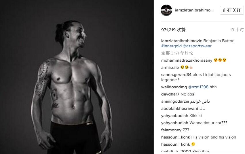 北京时间4月1日晚上22点,英超第30轮,曼联将坐镇老特拉福德球场迎战到访的西布朗。现效力于曼联球星伊布拉希莫维奇虽然还在停赛期,但这好像丝毫没有影响他的心情。伊布这就在个人INS上发了一张上身**秀身材的照片,并写道:本杰明-巴顿。
