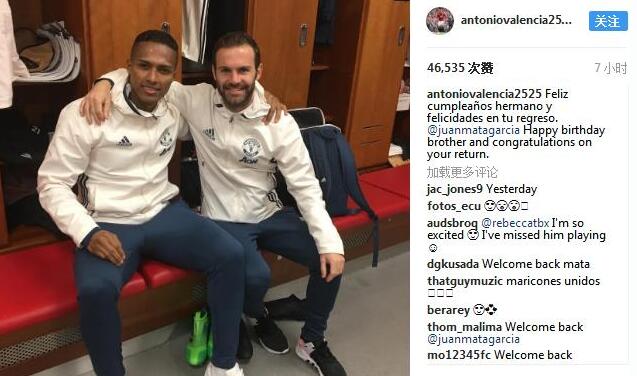 据曼联球员瓦伦西亚在自己的社交媒体上透露,西班牙球星马塔一起和他们入住了客战斯旺西的酒店,这意味着这名西班牙中场极有可能伤愈复出。