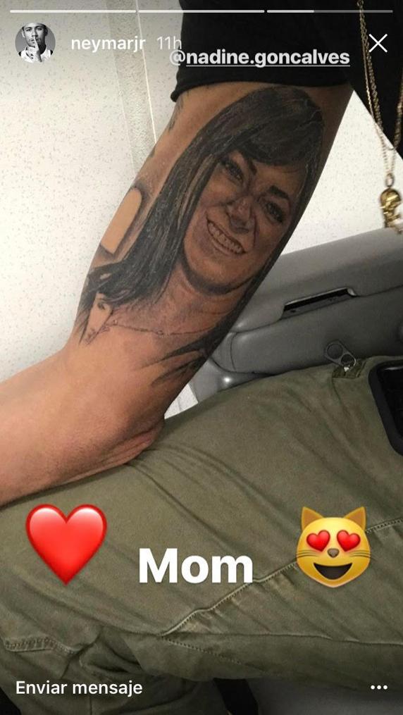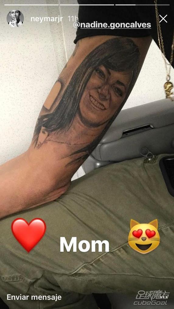 赛后,内马尔又在Instagram上晒出了右臂纹身的特写,他母亲的头像清晰可见。