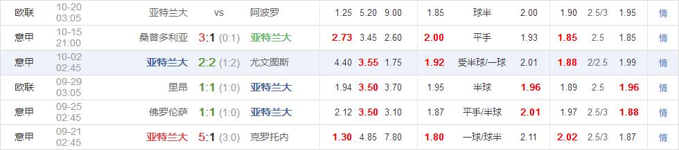 5.亚特兰大上轮联赛客场1-3不敌中游球队桑普多利亚,近4场各项赛事无一胜绩。