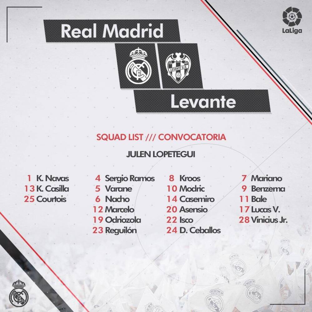 皇马将在今晚19:00对阵莱万特,经过国际比赛日的间歇期,联赛遭遇3轮不胜的白衣军团希望在主场重回胜利轨道,目前联赛大名单已经出炉,伊斯科复出。