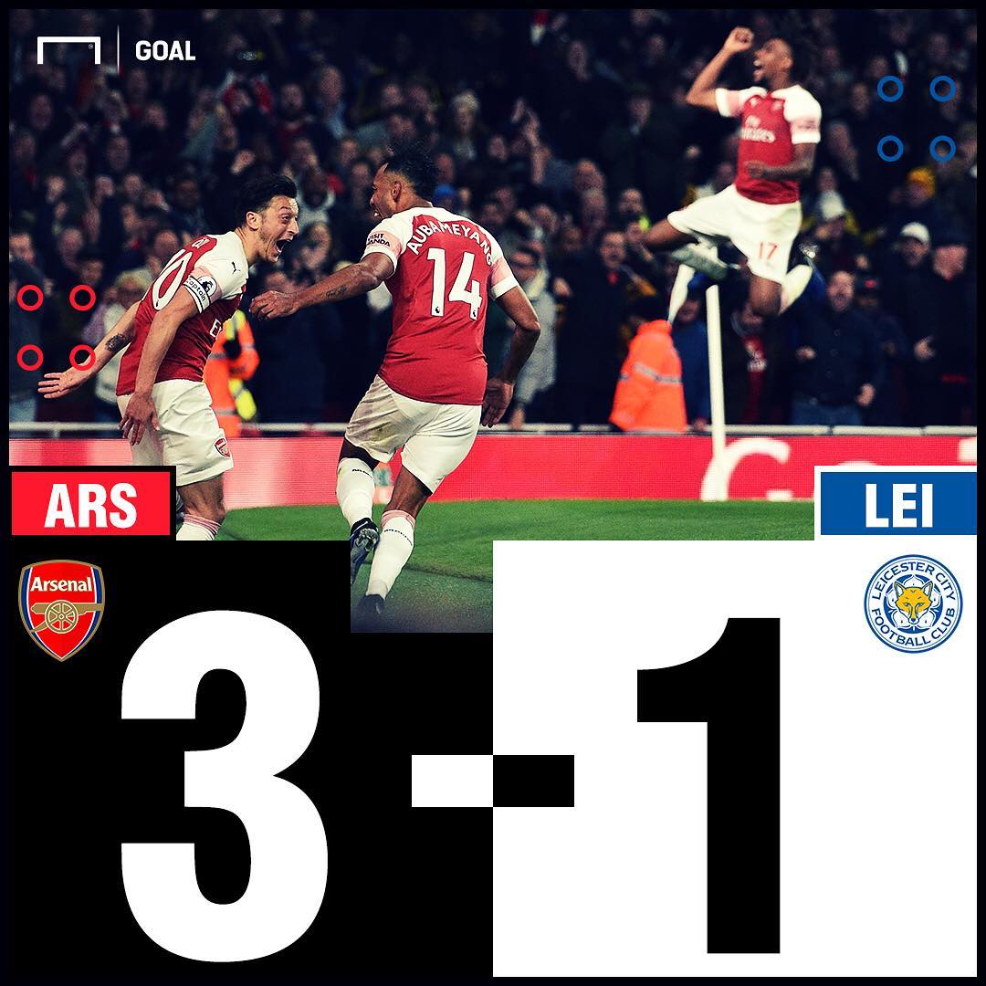 联赛第9轮,阿森纳坐镇酋长球场对阵莱斯特城。上半场,齐维尔射门造贝莱林乌龙,随后贝莱林助攻厄齐尔破门扳平比分。下半场,奥巴梅扬替补登场完成梅开二度。最终,阿森纳3-1逆转战胜莱斯特城,豪取各项赛事十连胜。