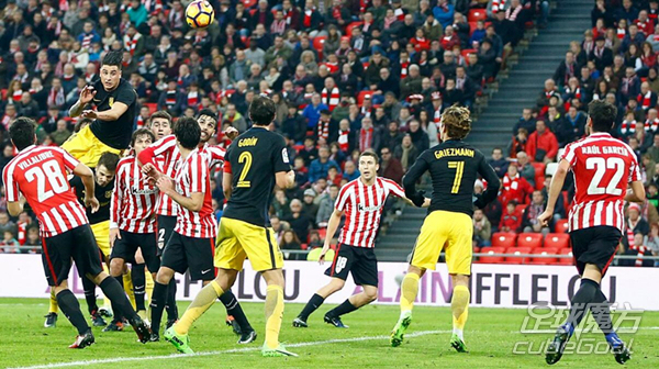 第2分钟,科克禁区前左侧斜传禁区,皮球弹地后直接飞入球网,毕尔巴鄂竞技0-1马德里竞技。