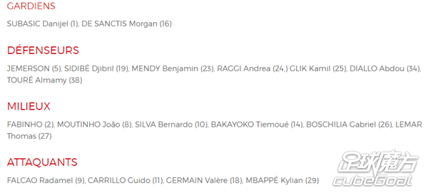 前锋:法尔考,卡里略,热尔曼,姆巴佩