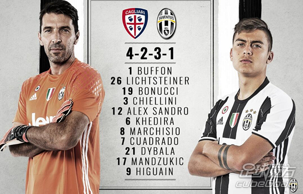 尤文本场比赛排出4231阵型,突在最前面的是伊瓜因,曼朱基奇和迪巴拉埋伏在其身后,赫迪拉搭档马尔基西奥坐镇中场,桑德罗与利希施泰纳出任左右边后卫。