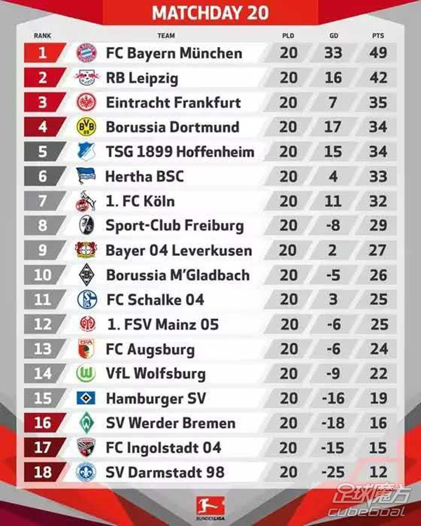 截至第20轮积分榜: