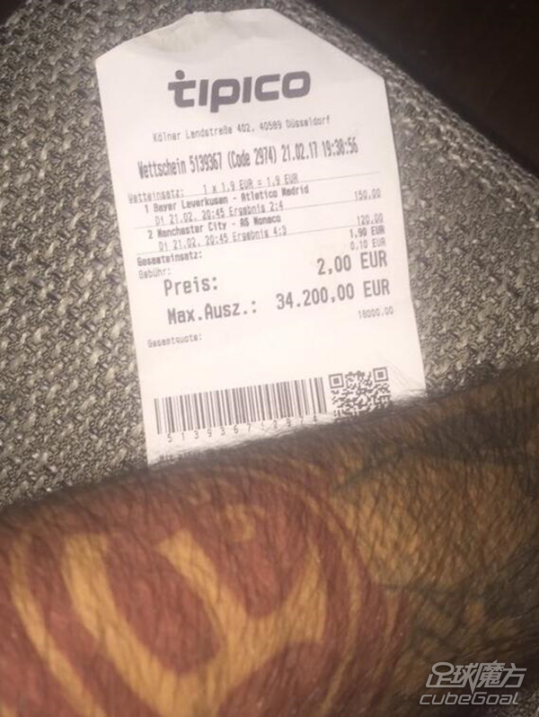 胜平负机构Tipico最终找到了这位彩民,作为胜平负机构代言人的卡恩在自己的脸书上写道:“亲爱的Jörres,我听说你在Tipico的投注差点就中奖的事了。用2欧赢得34200欧是件很强的事。但就因为萨内的进球使得这次美妙的中彩泡汤了,这太苦了。不过我准备了些东西给你:我和Tipico会在3月15日送你去摩纳哥看次回合的比赛,你还可以带一名同伴。来回的机票、酒店和还有VIP比赛门票,一切都全包了!我希望对你来说这是个小小的安慰。我也很好奇你对这次的比分有怎样的预测。”