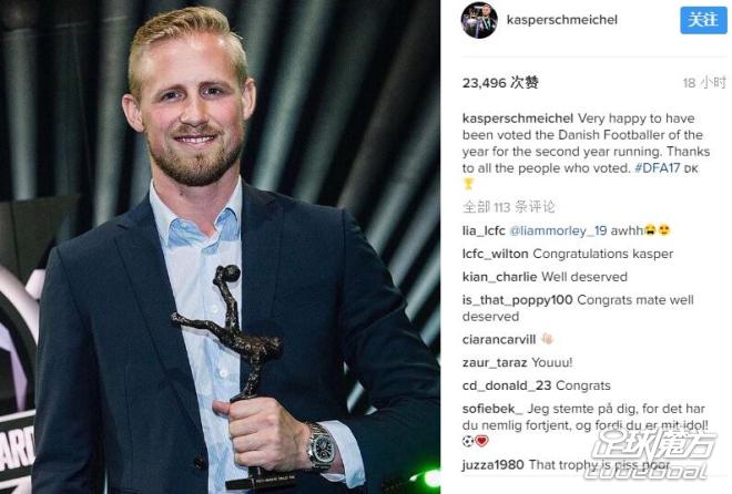 北京时间3月21日晚上,莱斯特城官方报道,球队主力门将卡斯帕-舒梅切尔赢得2017年的丹麦足球先生,这也是他连续第二年获得此项荣誉。俱乐部官方推特在第一时间送上了祝贺。