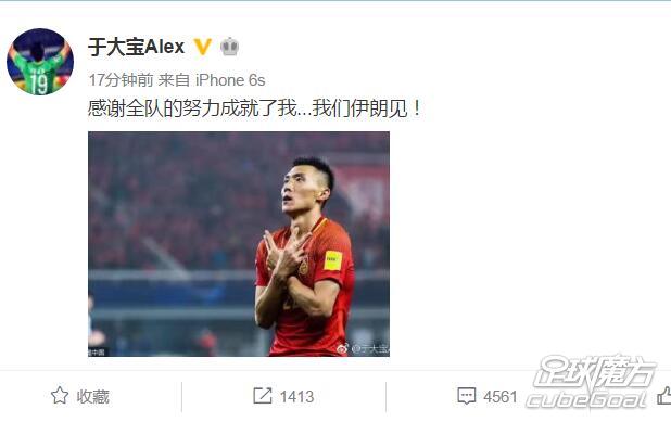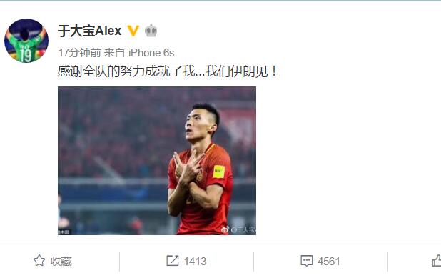 赛后,于大宝更新了个人微博,表达了对球队的感谢,以及对接下来比赛的期待。他在微博中写道:“感谢全队的努力成就了我...我们伊朗见!”