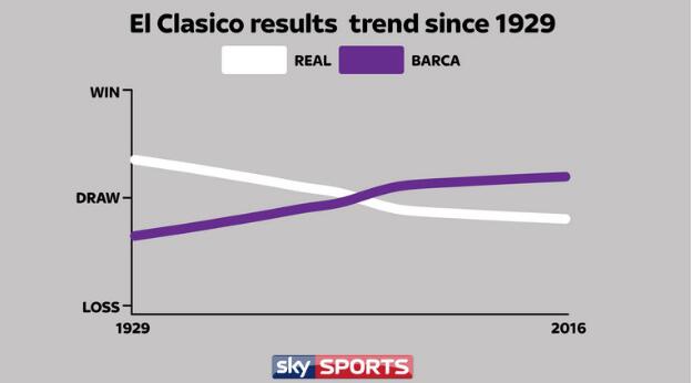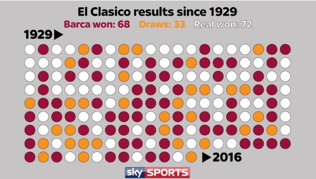 西甲联赛将会在下周迎来世界瞩目的西班牙国家得比,届时皇马将会在主场迎战巴萨。虽然比赛还有一周的时间,但是天空体育已经在为这场比赛造势,回顾了两支球队在西甲历史的交锋记录。