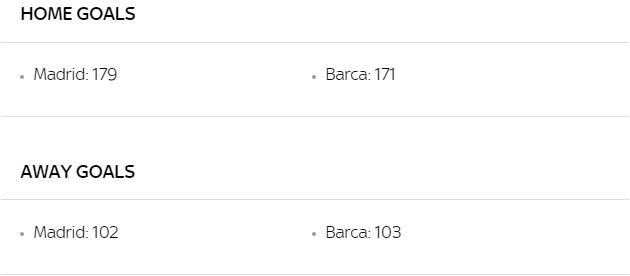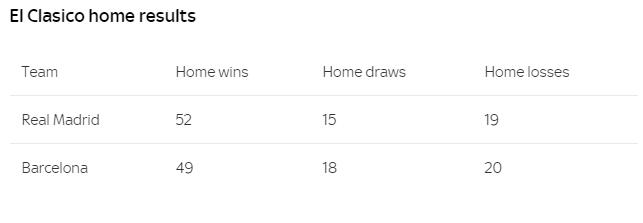 在两支球队的交手中,皇马在主场赢得了52胜、15平以及19负,而巴萨在主场49胜、18平以及20负。在2015年11月份,巴萨在伯纳乌4-0大胜皇马,但是之后皇马在2016年四月份在诺坎普2-1复仇。